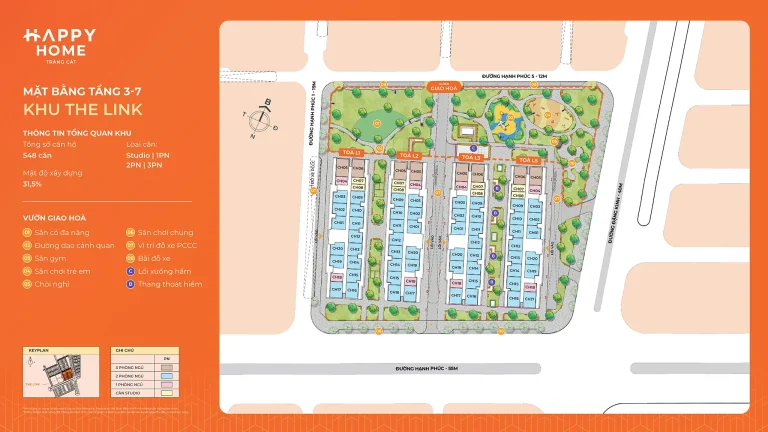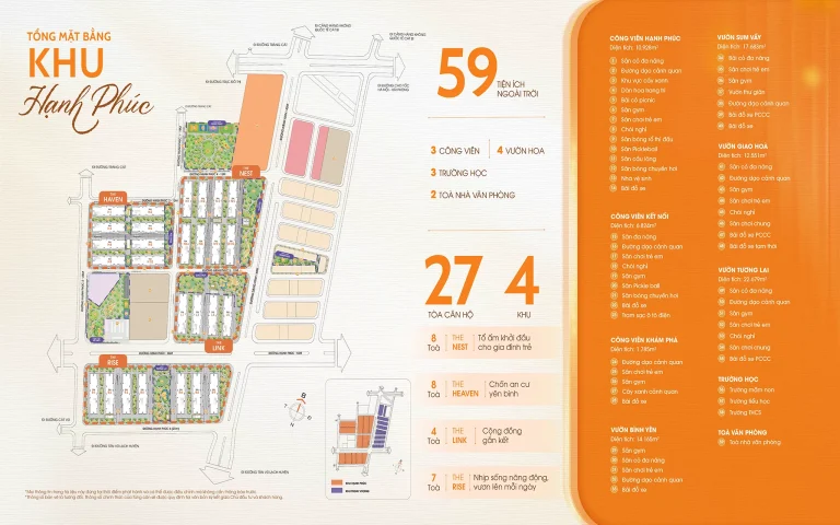Tổng mặt bằng của khu Hạnh Phúc, với đầy đủ thông tin, tiện ích.
