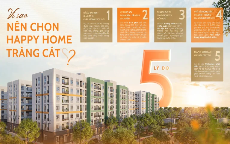 Dự án Nhà ở xã hội (NOXH) Happy Home Tràng Cát không chỉ là giải pháp về nguồn cung nhà ở giá rẻ mà còn thiết lập một tiêu chuẩn sống mới cho người có thu nhập thấp và trung bình tại Hải Phòng. Trọng tâm của dự án là Khu Hạnh Phúc – tên gọi chính thức của phân khu NOXH cao tầng, được quy hoạch đồng bộ với hạ tầng và tiện ích vượt trội.