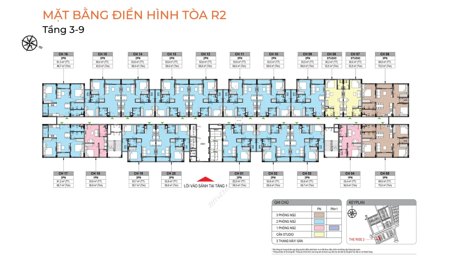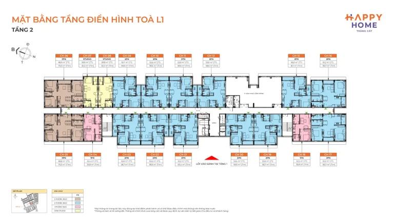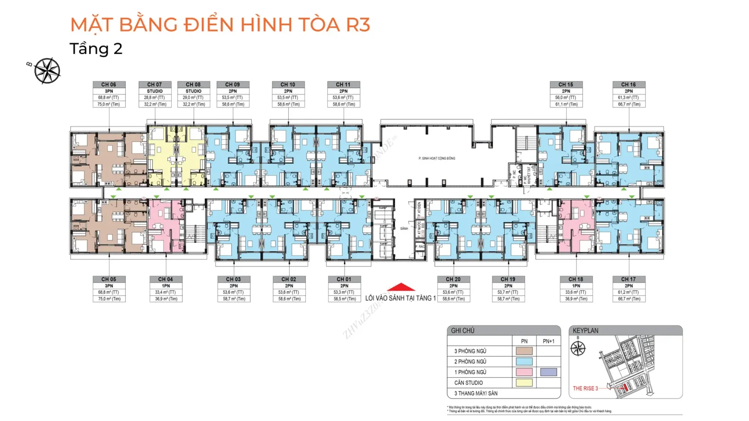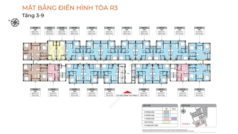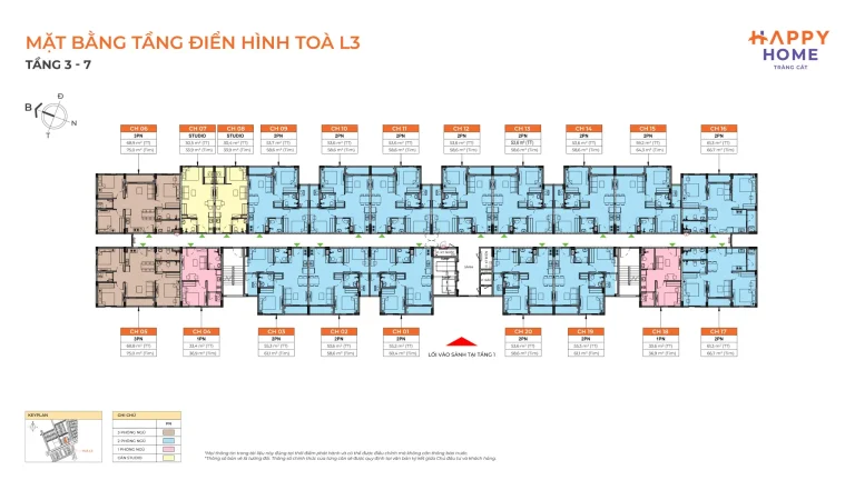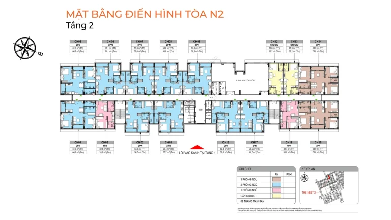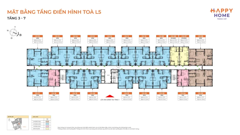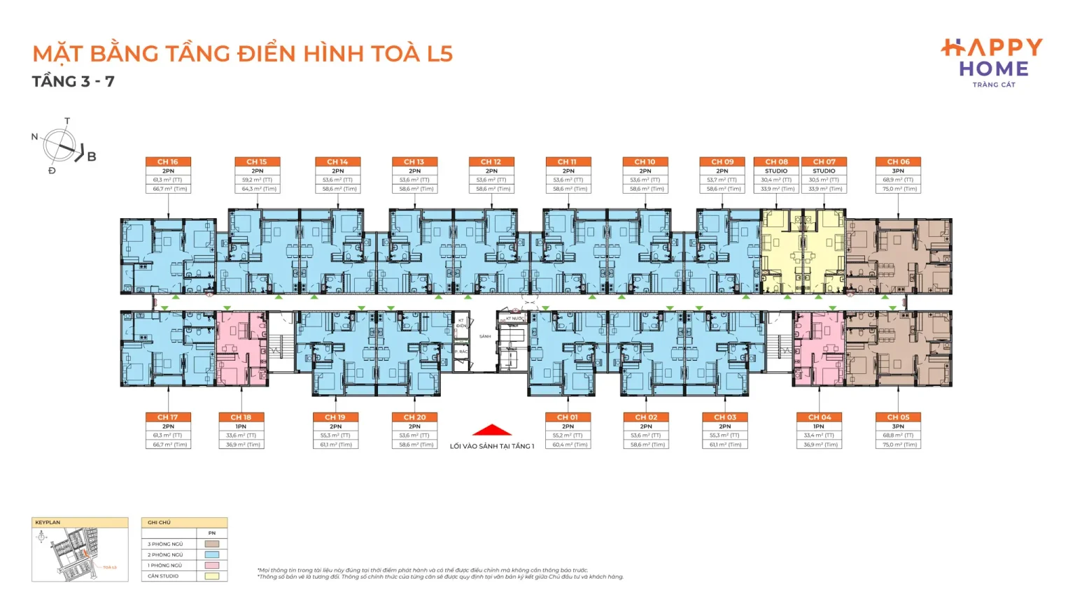 Sản phẩm tại các phân khu được thiết kế đa dạng diện tích từ 28m² đến 70m² (Studio, 1PN, 2PN, 3PN), đáp ứng đúng nhu cầu và khả năng tài chính của nhiều nhóm khách hàng khác nhau.