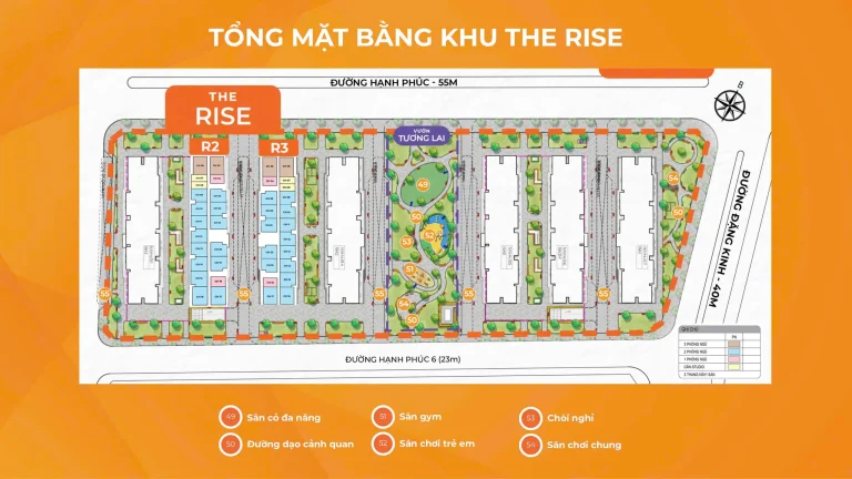 - Khu NOXH The Rise: Gồm 7 tòa tháp, giáp ranh với các khu vực tiện ích Vành Đai 3 và trục đường lớn 55m