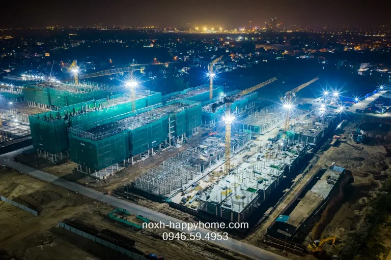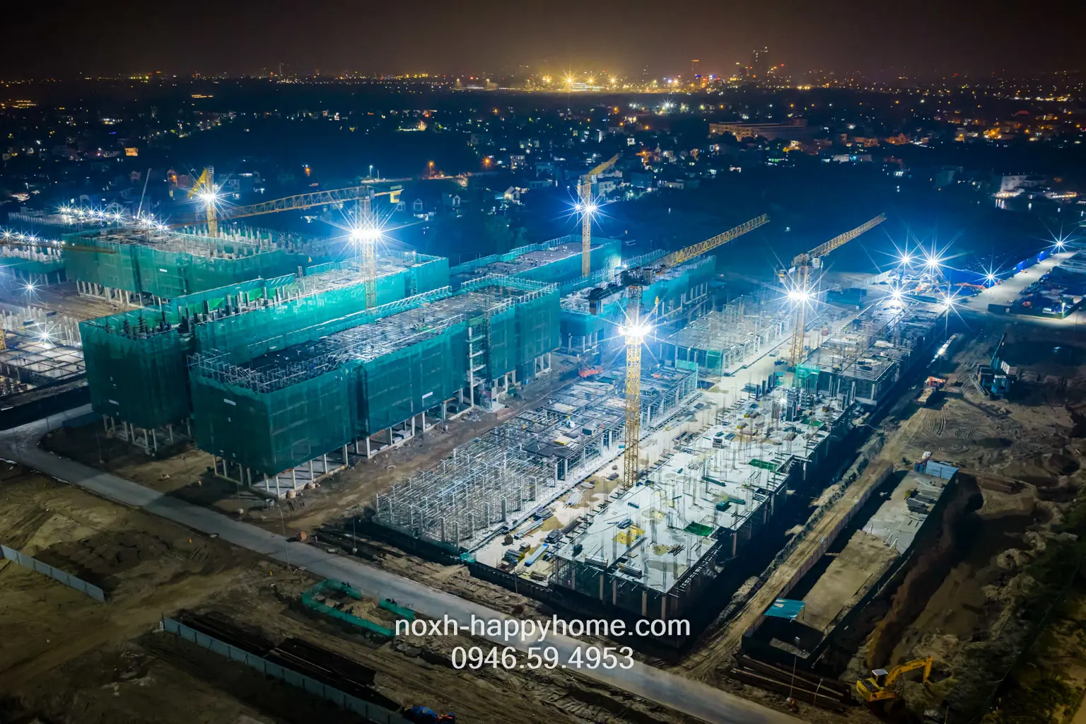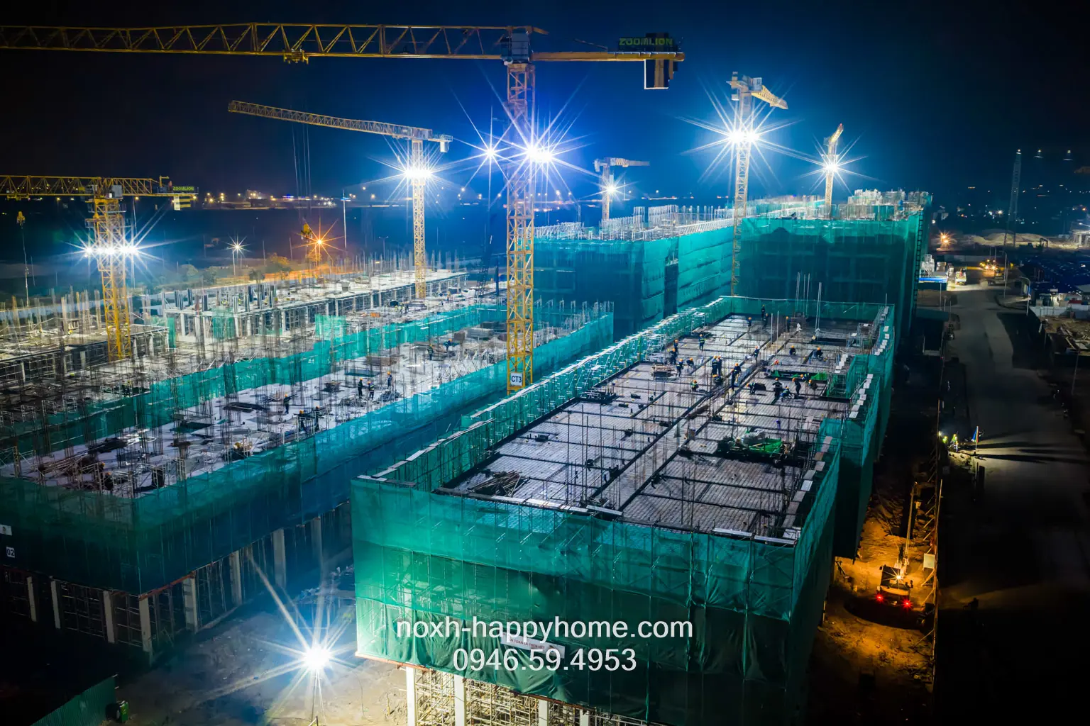 Hình ảnh công trường sáng đèn xuyên đêm với 3 ca làm việc liên tục là lời khẳng định mạnh mẽ nhất về uy tín và quyết tâm đưa dự án về đích đúng hạn.