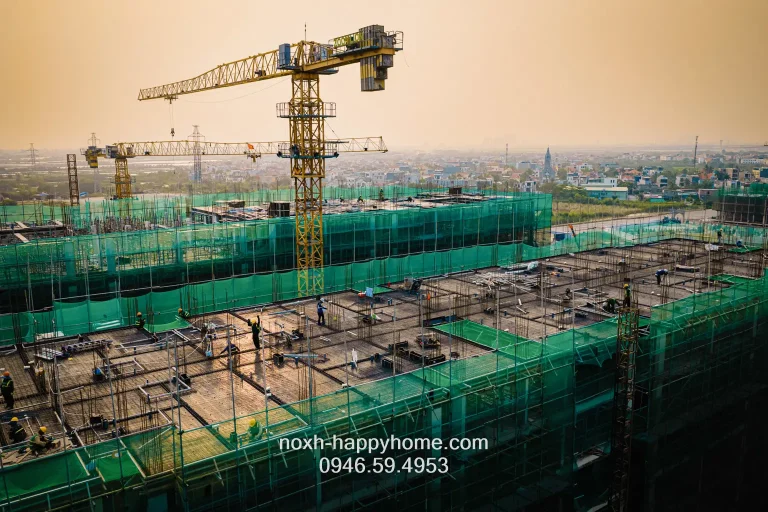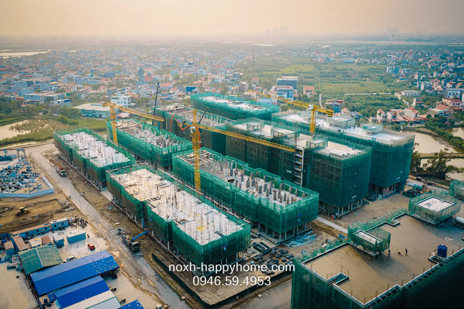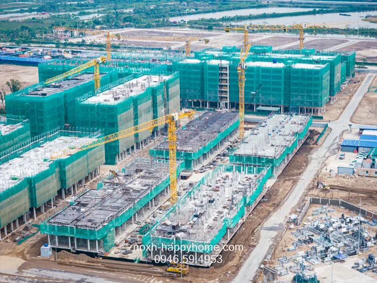 - Về tiến độ: Hầu hết các tòa đều đã lên tầng cao, được bao lưới xanh (lưới an toàn) kín mít – dấu hiệu của việc thi công khẩn trương cả bên trong lẫn bên ngoài.
